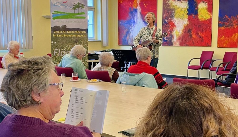 „Datt Lied van Borjenwannerwech“ (Das Lied vom Burgenwanderweg) ist dem Rennsteiglied ebenbürtig. Das zweisprachige Liederheft „Flämingische Klampfenlieder“ enthält neben den Liedern up Flämingisch auch die hochdeutschen Übersetzungen. So kam der klingende Vormittag bei allen Gästen des Seniorenfrühstücks bestens an. „Eine Fortsetzung wird es sicher geben“, so Bärbel Krämer vom Diakonischen Werk. Dieser Träger organisiert die wöchentlichen Treffen im Rahmen des Projektes „Pflege vor Ort.“