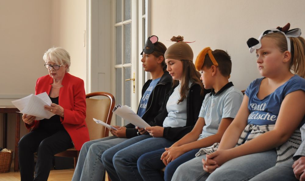 Heidi Schäfer verabschiedete sich mit ihrer Kinnerschool offiziell beim Tag der niederdeutschen Sprache am Sonntag, 28. September 2025, im Rathaus in Wittstock. „28 Mädchen und Jungen haben die Kinnerschool in 17 Jahren besucht“, sagte sie dem Publikum im vollen Rathaussaal. Und ergänzte: „Der Abschied ist mit einem weinenden und lachenden Auge verbunden.“ Ein letztes Mal traten die derzeitigen Schüler der Kinnerschool vor das Publikum. Mit „Müüsken und Mettwöstken“ kam eine Geschichte aus der Uckermark auf die Bühne.